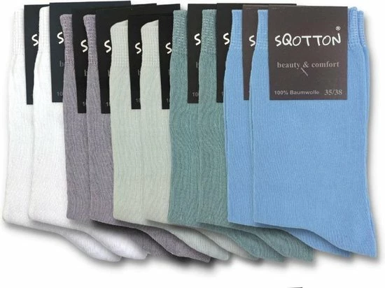 10 Paar Damessokken – SQOTTON – 100% Katoen – Naadloos – Ocean – Maat 35-38