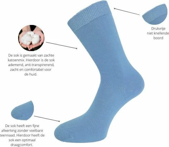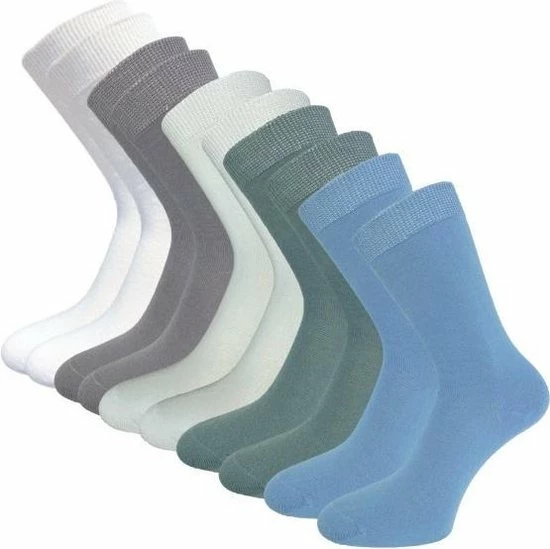 Set van 10 paar damessokken in ocean kleuren. Deze fijne dunne dames sokken zijn gemaakt van 100% katoen waardoor de sokken extra zacht aanvoelen. Deze damessokken zijn ademend, anti-transpirerend en hebben een handgekettelde afwerking zonder voelbare naad op de tenen. De niet knellende boord zorgt voor een optimaal draagcomfort. 100% katoenen sokken zijn helaas minder elastisch waardoor een katoenen sok niet stevig om je been zit, maar soepel valt, hierdoor zijn deze sokken ook ideaal als diabetes sokken. Deze damessokken zijn verkrijgbaar in de maten 35-38 en 39-42.