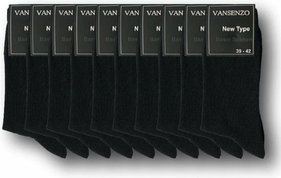 10 Paar Sokken – VANSENZO® – Basic – Zwart – Maat 39-42
