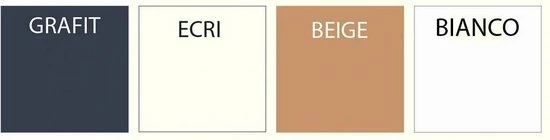 Verkrijgbaar in verschillende kleuren: nero ( zwart), bianco ( wit), grafiet ( donker grijs) en beige.