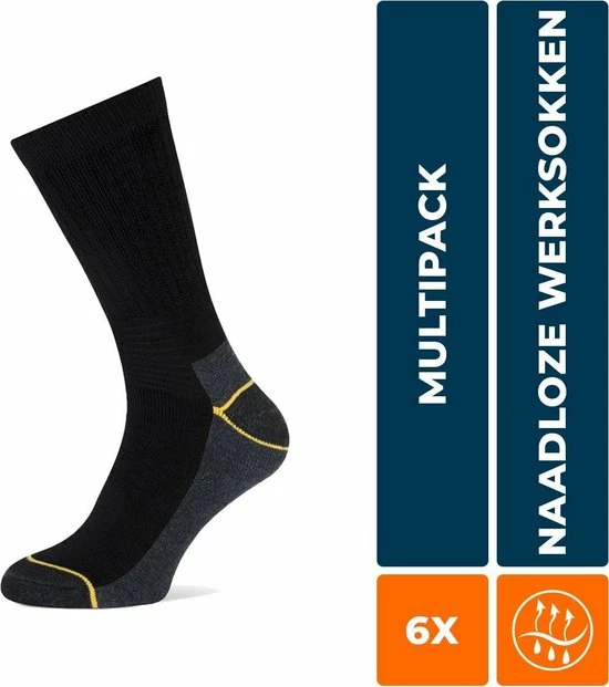 6-Pack Stevige Worker Werksokken Stapp Yellow – Worker 4415.699 – Zwart – Unisex – Maat 39-42