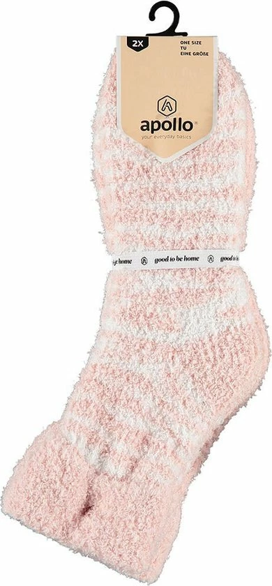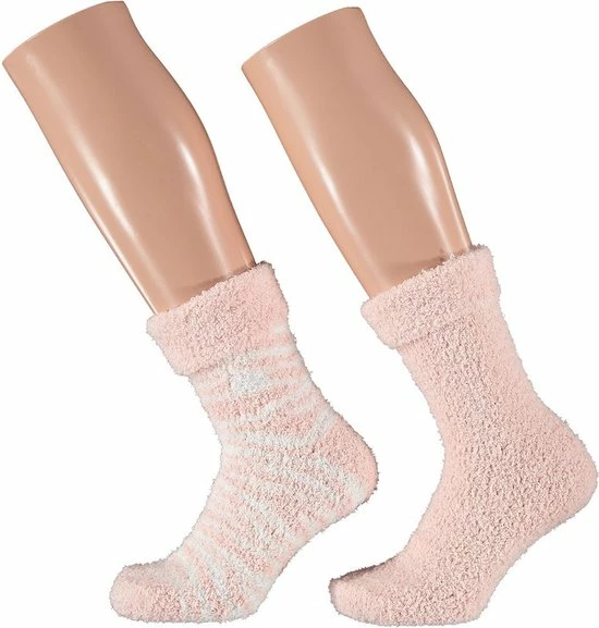 2-Pak dames bedsokken/huissokken roze/wit maat 36-41. 2 paar warme zachte sokken, 1x met zebra strepen en 1x unikleur roze, ideaal om te dragen in bed of op de bank. Let op: De sokken hebben geen anti-slip zool. Materiaal: 92% polyester en 8% elasthan.