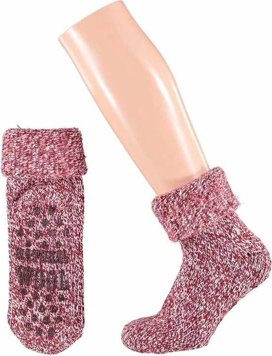 Jouw voeten blijven heerlijk warm dankzij deze gebreide dames huissokken van duurzaam gerecycled wol met een gebrushte binnenkant. Ze zijn lekker dik en zacht en hebben een natuurlijke en huiselijke uitstraling in mooie mouliner basiskleuren. Het functionele antislip profiel op de voetzolen zorgt dat je ook grip hebt op een gladde vloer. De perfecte pasvorm maakt deze sokken bijzonder comfortabel om te dragen. Apollo, your everyday basics.