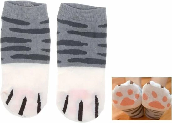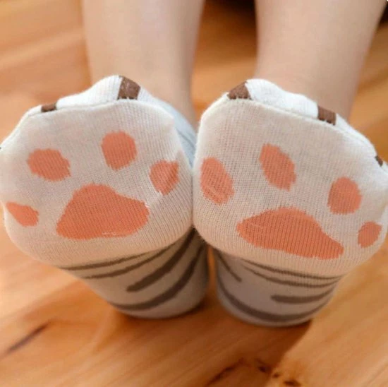 Leuke katten warme sokken voor dames. De huissokken hebben een leuke streep print en een kattenpootje afdruk onderop de sok.