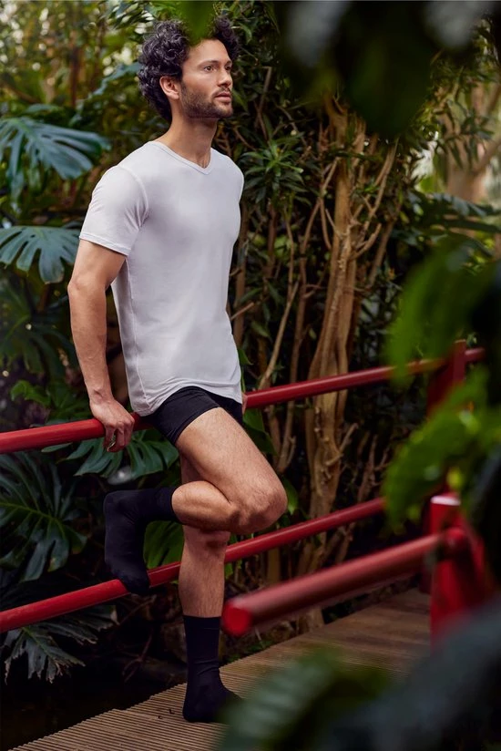 Deze Bamboo Essentials sokken hebben een verstevigde hak en teen en een geribbelde rand aan de bovenkant. Dit zorgt voor een pasvorm op maat. De afwerking van de teen is handlinked waardoor je geen last hebt van een naad.