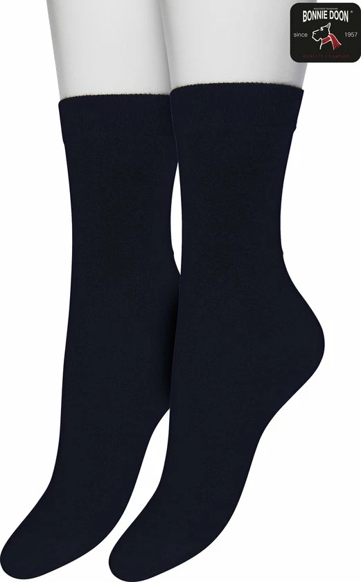 Bonnie Doon Basic Sokken Dames Donker Blauw Maat 36/42 – 2 Paar – Basis Katoenen Sok – Gladde Naden – Brede Boord – Uitstekend Draagcomfort – Perfecte Pasvorm – 2-pack – Multipack – Effen – Donkerblauw – Navy – OL834222.37
