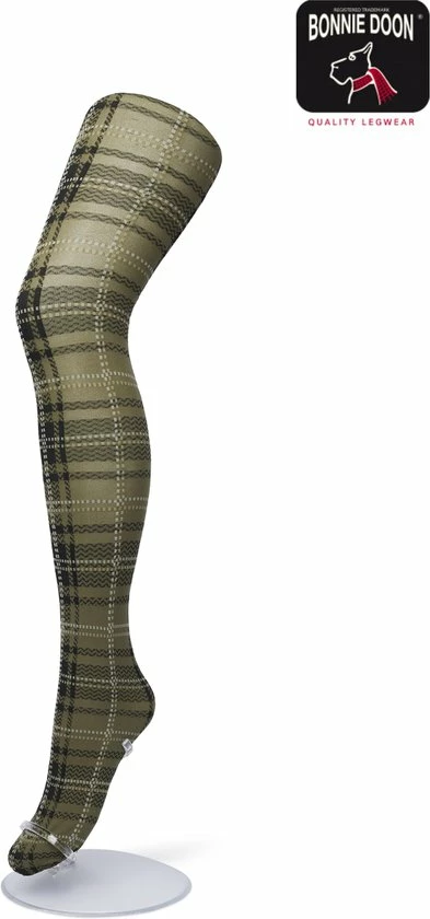 Bonnie Doon Dames Panty Met Ruiten 40 Denier Donker Groen Maat L/XL – Ruit Motief – Ruitjes Print – Uitstekende Pasvorm – Gladde Naden – London Checks Tights – Heerlijk Comfortabel – Leger – Olijfgroen – Ivy Green – BP211910.5