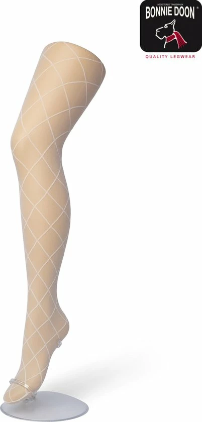 Bonnie Doon Dames Ruiten Panty 30 Denier Off White Maat S/M – Chique Panty – Ruit Dessin – Brede Boord – Comfort – Ruitjes – Diamant – Geruite Print – Rhombus Tights – Feestelijk – Gebroken Wit – Ecru – Crème – Ivory – BP201911.2