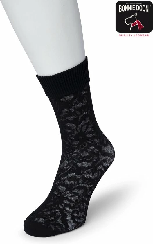 Bonnie Doon Dames Sokken Met Kant Maat 36/42 Zwart – Panty Sokjes – Doorschijnende Sokken – Feestelijk – Semi Transparant – Kanten Sokken – Bloem Patroon – Uitstekende Pasvorm – Flower Sock – Black – BP201101