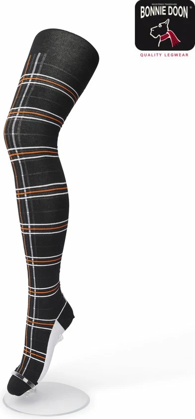 Bonnie Doon Maillot Dames Met Ruiten Grijs/Oranje Maat L/XL – Ruit Motief – Ruitjes Print – Biologisch Katoen – Uitstekende Pasvorm – Bio Cotton – Gladde Naden – Checks Tights – Heerlijk Comfortabel – Poinciana – BP211901.3