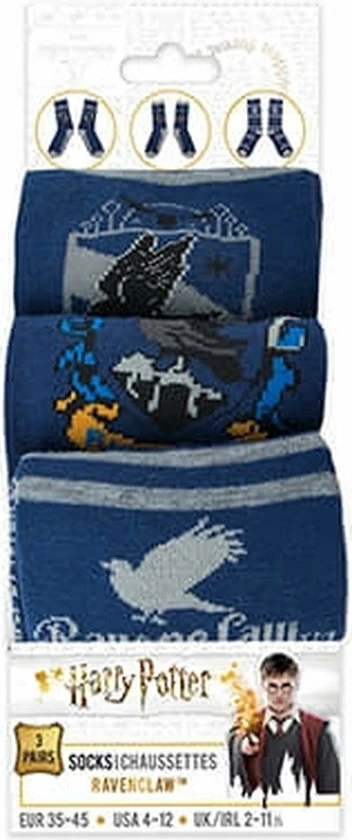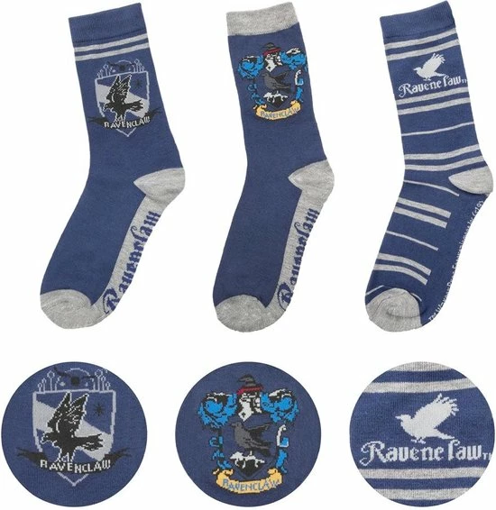 Set van 3 paar Ravenclaw / Ravenklauw sokken van Harry Potter.Materiaal: 70% polyester, 20% nylon en 10% spandexMaat: 37 – 46 / US 6-12One size fits most