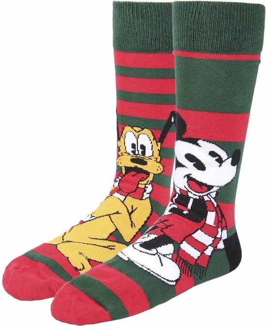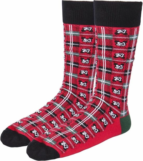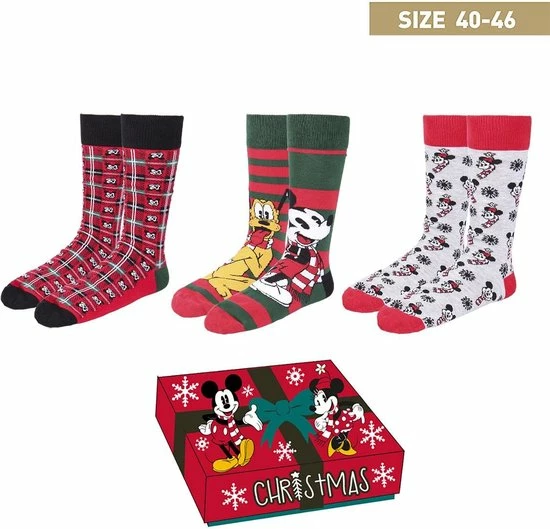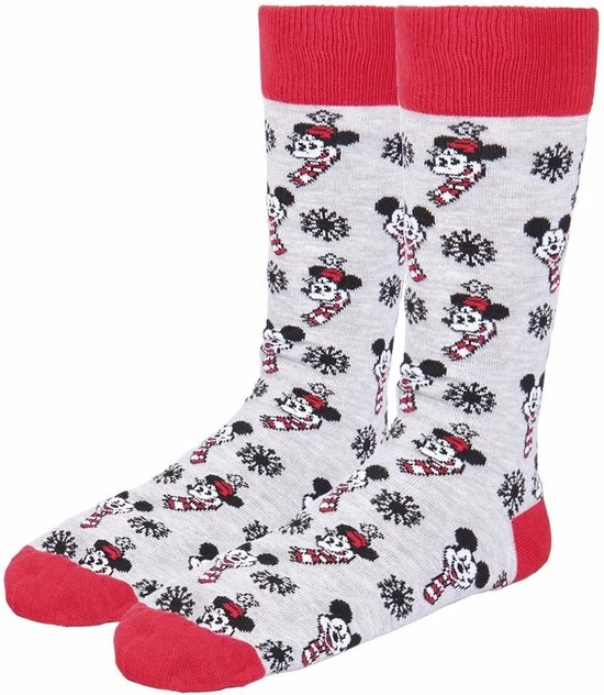 Op de sokken vind je verschillende opdrukken van Mickey en Minnie in Kerststijl.