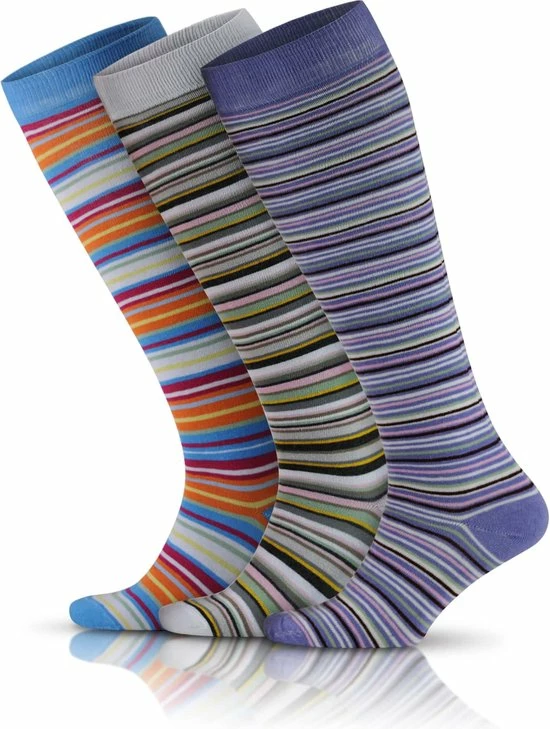 Gowith 3-pack, katoen, hiel-teensteun, kniehoge damessokken met hoepelpatroon