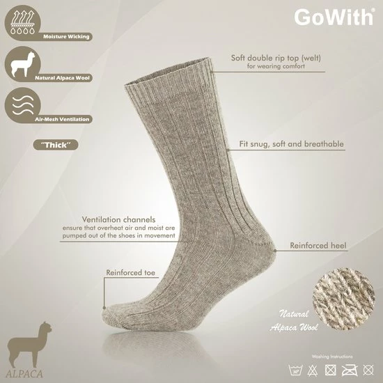 Comfortabele slijtage: Omdat onze wandelsokken zijn gemaakt van alpaca garen, zijn ze hypoallergeen en jeuken ze vrij. Hoewel onze sokken van alpacawol heerlijk warme sokken zijn, zijn ze toch licht van gewicht en niet volumineus in je schoenen.