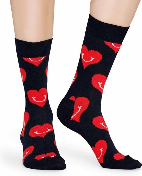 Happy Socks Smiley Heart Sock Zwart/Rood, Maat 41/46