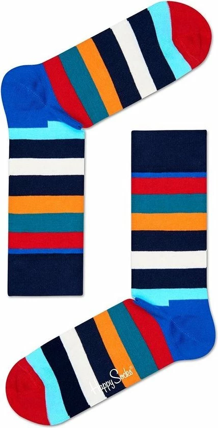 Happy Socks Stripe Sokken – Blauw/Rood/Geel/Zwart – Maat 36-40