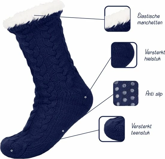 De siliconen grepen op de sokkenzolen voorkomen uitglijden en het vallen op gladde vloeren. Goede sokken voor jong en oud om vallen te voorkomen en tegelijkertijd er stijlvol en comfortabel uit zien.