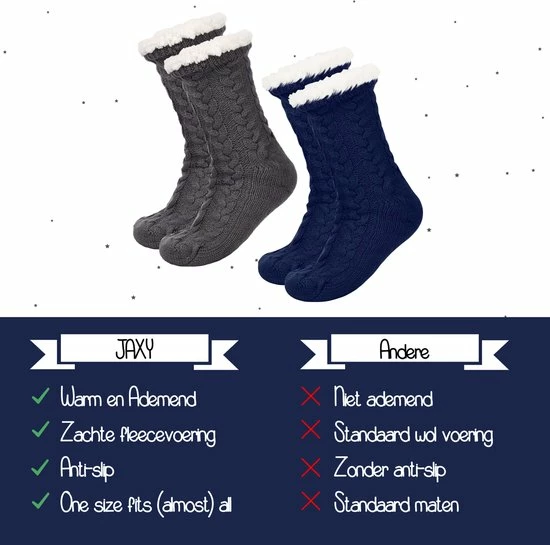 Op zoek naar de meest stijlvolle en comfortabele huissokken? Zoek dan niet verder. Deze fleece gevoerde winter sokken van JAXY bevatten een zacht wolkachtig donzig materiaal die ervoor zorgen dat je voeten en tenen warm blijven op koude momenten. De zachte fleecevoering is super zacht en houden niet alleen je voeten warm, maar laten je voeten ook ademen en voorkomen daarmee zweetvoeten.