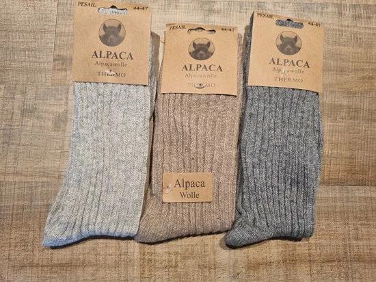 3 Paar Alpaca Wollen Sokken in de neutrale kleuren Grijs/Wit, Beige en Grijs. Maat 43-46. Unisex.