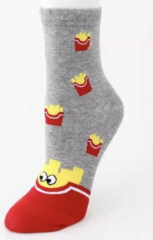 Merkloos Grappig Sokken Voor Dames En Heren – Zak Friet – Patat Sokken – Unisex Sokken – Maat 36-41