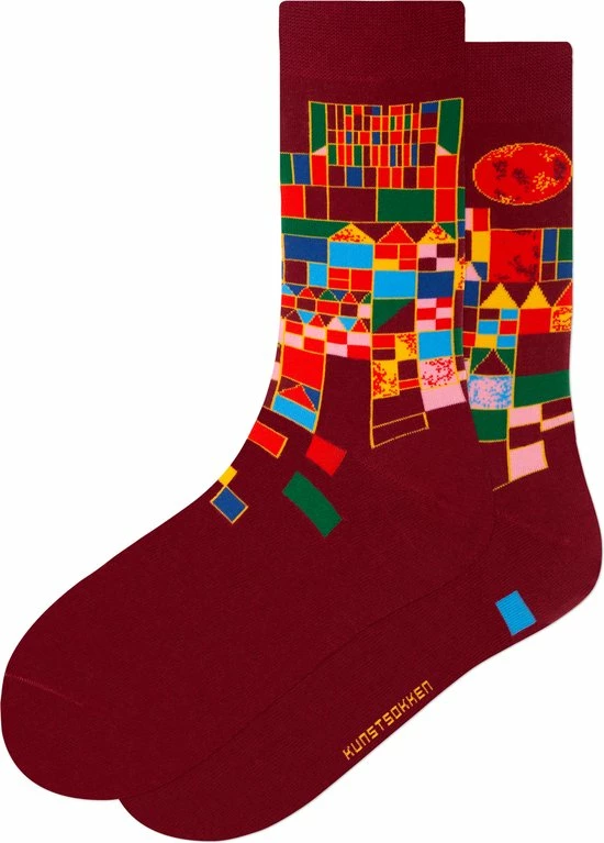 Deze Kunstsokken zijn gebaseerd op “Kasteel en Zon” door de Duitse artiest Paul Klee. Geef een artistieke draai aan je outfit met dit kleurrijke meesterwerk van premium kwaliteit of geef ze cadeau aan vrienden, kennissen of familie.