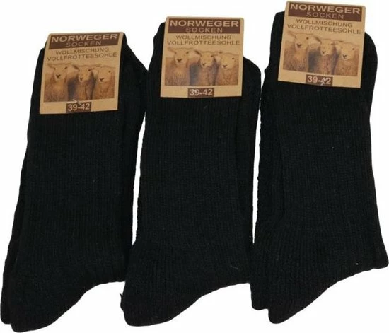 Set van 3 paar noorse sokken. Zachte badstof zool, versterkt. Anti transpiratie door wol en katoen. * Materiaal: 30% katoen, 28% wol, 25% plyacril, 17% polyamide. * Krimpvrij. * Geen snijden boord.