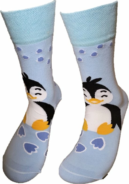 Merkloos Verjaardag Cadeau – Grappige Sokken – Pinguïn Stapjes Sokken – Leuke Sokken – Vrolijke Sokken – Valentijn Cadeau – Luckyday Socks – Cadeau Sokken – Socks Waar Je Happy Van Wordt – Maat 37-42