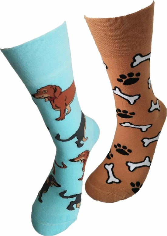 Merkloos Verjaardag Cadeau – Teckel Sokken – Vrolijke Sokken – Valentijn Cadeau – Aparte Sokken – Grappige Sokken – Leuke Dames En Heren Sokken – Moederdag – Vaderdag – Socks Waar Je Happy Van Wordt – Maat 42-47