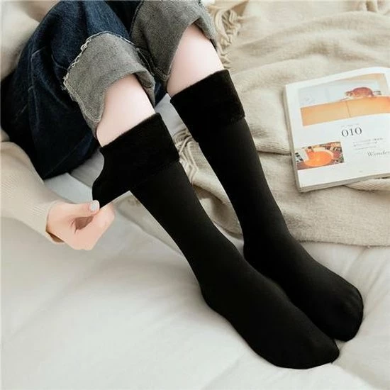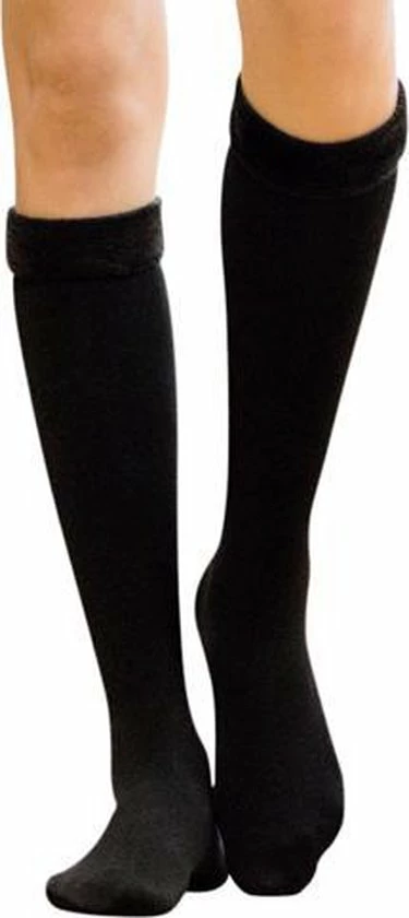 Deze warme sokken hebben een zachte Fleecevoering, wat ervoor zorgt dat je voeten heerlijk warm blijven. De sokken bevatten katoen en elastaan waardoor ze ademend zijn. Deze zwarte kousen vallen net onder de knie.