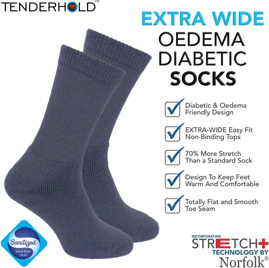 Norfolk’s extra brede diabetische en oedeemvriendelijke Peter-sokken zijn ontworpen om het comfort van je voeten te vergroten.