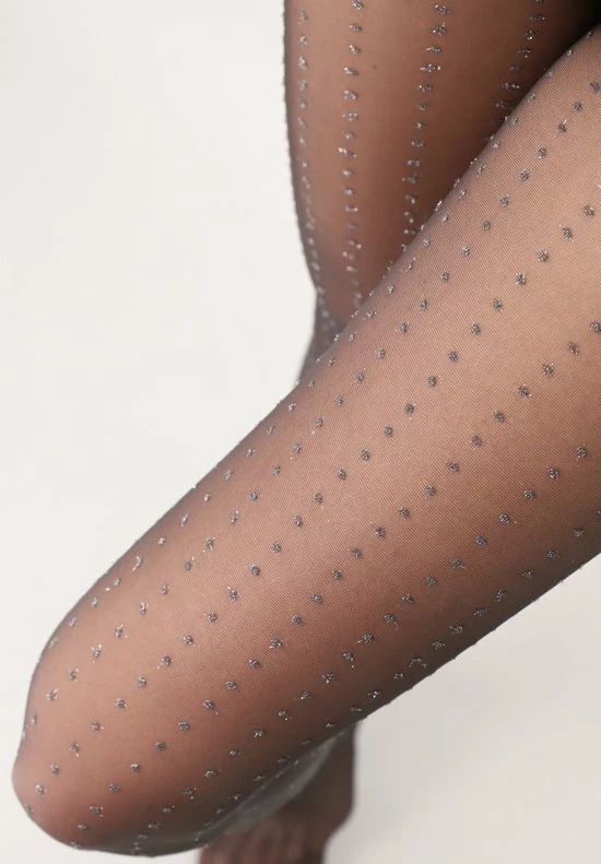 Transparante panty met een klein stippenpatroon en een glitterdraad. Afgezet met een comfortabele tailleboord.