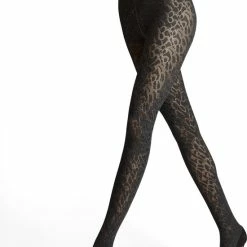 FALKE Floating Met Motief Fun Fijn Elegant Halfdoorzichtig 60 DEN Zwart Dames Panty – Maat M