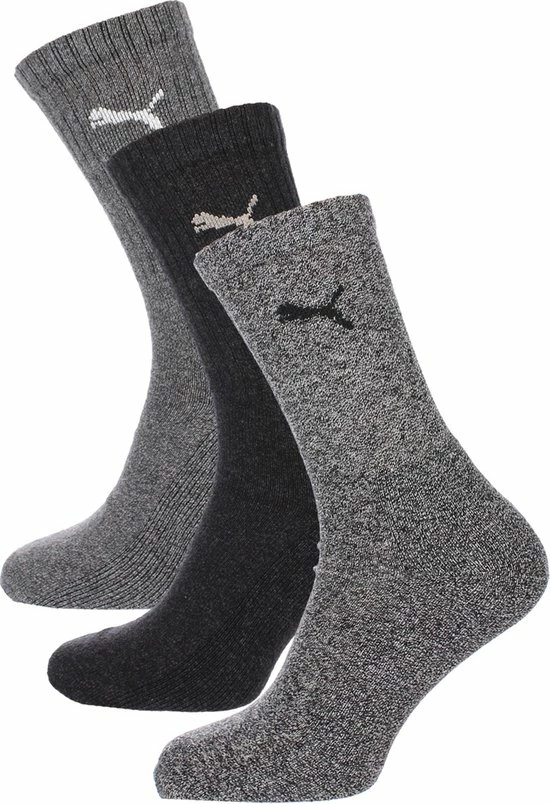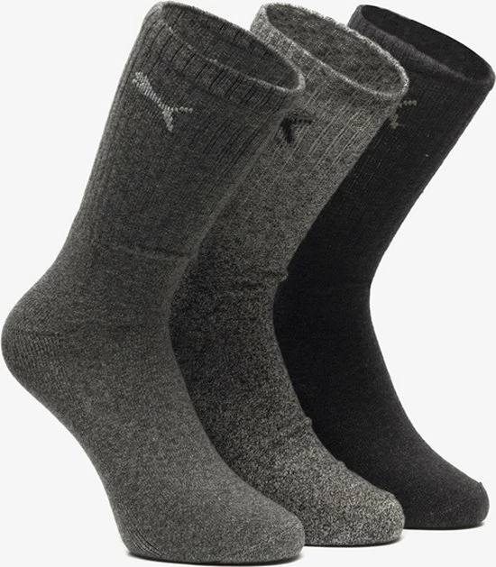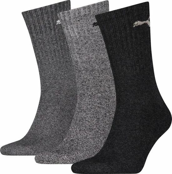 De klassieke PUMA sportsok 3-pack zijn de perfecte sportsokken. Het ribmotief aan de bovenzijde en extra versteviging bij de zool en tenen zorgen voor de perfecte fit. Het zachte katoen en de platte naden zorgen daarnaast voor een ultiem draagcomfort. De sokken zijn verkrijgbaar in de kleuren antraciet en grijs.