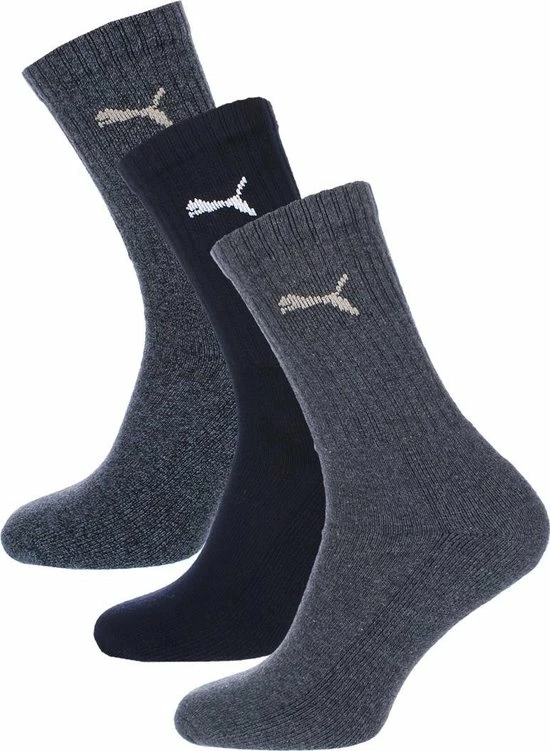 De klassieke PUMA sportsok 3-pack zijn de perfecte sportsokken. Het ribmotief aan de bovenzijde en extra versteviging bij de zool en tenen zorgen voor de perfecte fit. Het zachte katoen en de platte naden zorgen daarnaast voor een ultiem draagcomfort. De sokken zijn verkrijgbaar in de kleur navy.