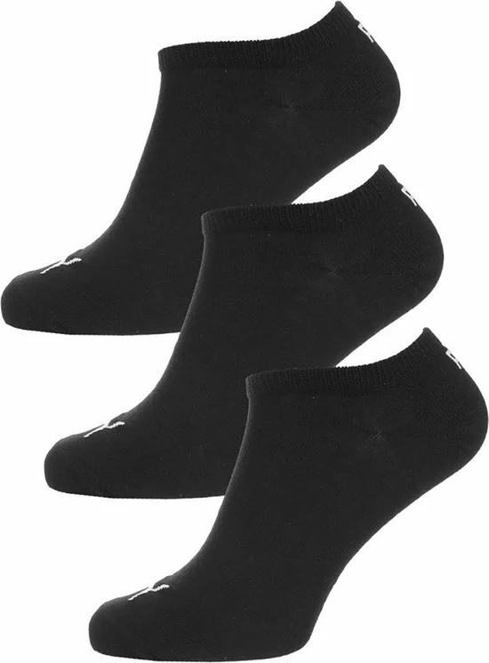 De PUMA 3-pack plain sneaker sokken zijn de ideale sok voor echte sneakerdragers. De sneaker sokken vallen tot net onder de enkel. Dit in combinatie met de platte naden zorgt voor de perfecte pasvorm. De sokken zijn verkrijgbaar in de kleur zwart en zijn voorzien van het PUMA logo.