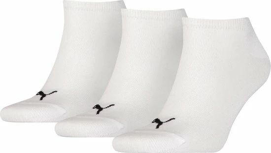 De PUMA 3-pack plain sneaker sokken zijn de ideale sok voor echte sneakerdragers. De sneaker sokken vallen tot net onder de enkel. Dit in combinatie met de platte naden zorgt voor de perfecte pasvorm. De sokken zijn verkrijgbaar in de kleur wit en zijn voorzien van het PUMA logo.