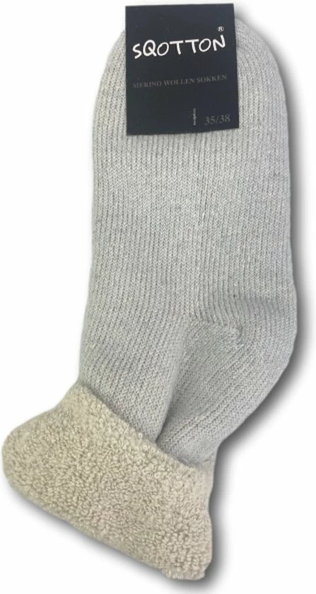 Dikke wollen huissok in de kleur baby blauw met echte merinowol. Deze zachte, pluche merinowol gevoerde huissok heeft de perfecte uitstraling voor de koudere dagen. Deze gevoerde huissok houdt warmte vast in de sok en voelt comfortabel aan zonder je voeten te laten zweten. Deze merinowollen huissok is een mooi alternatief voor de klassieke huispantoffel. Je kunt thuis alle aandacht trekken met deze wollen huissok of je nu lekker gaat te chillen op de bank of gewoon gaat sloffen in de woonkamer, je voeten zullen zeker warm en fijn zitten dankzij deze wollen huissok. Niets is lekkerder dan een heerlijk warme huissok aan te trekken en te genieten van de koude dagen. Deze merinowollen huissok is verkrijgbaar in de kleur blauw, roze en bruin.