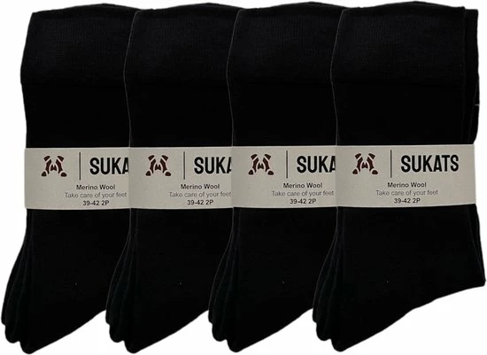 De sokken zijn gemaakt van 50% merinowol, 30% acryl, 18% polyamide en 2% elastaan wat de pasvorm bevordert. De inhoud van de verpakking bestaat uit maar liefst 8 paar sokken. Het is mogelijk om de sokken in veelvoud te bestellen tegen een stapelkorting. De sokken zijn van het merk Sukats en zijn geproduceerd in P.R.C. De sokken zijn beschikbaar in twee verschillende maten (39-42 en 43-46).