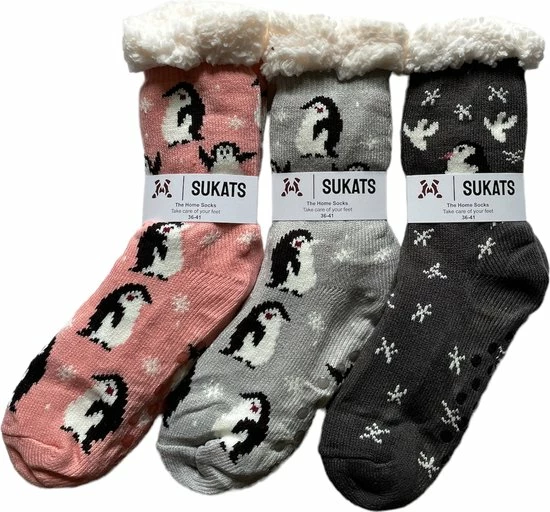 Heb jij ook altijd last van koude voeten en ben jij op zoek naar comfortabele huissokken? Dan hoef je niet verder te zoeken. Deze set van 3 paar huissokken voorziet in die wens. De met pluche gevoerde winter sokken van Sukats zijn heerlijk zacht en zorgen ervoor dat je warme voeten krijgt zonder dat ze gaan zweten. Dat komt omdat het niet van wol gemaakt is maar van acryl. De fleecevoering laten je voeten ademen in tegenstelling tot bij de traditionele huissokken.