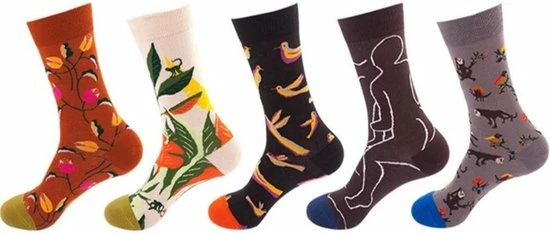 De set bestaat uit 5 paar sokken elk met een eigen design:
